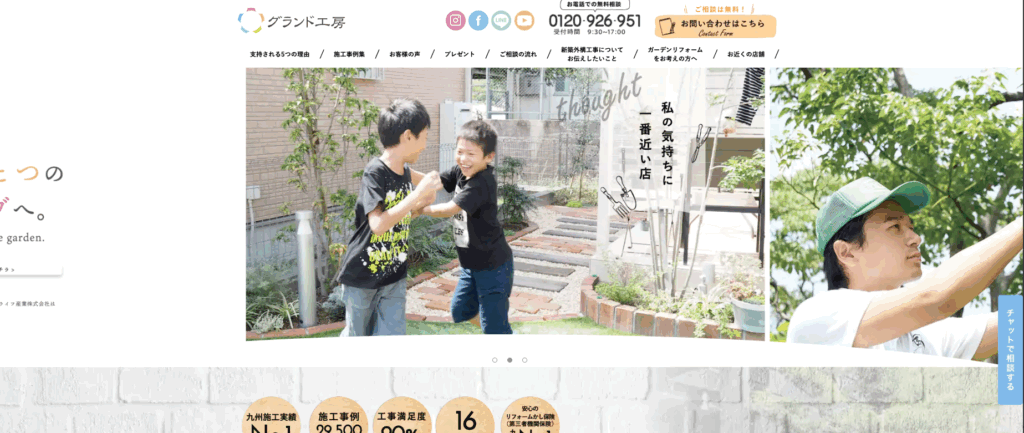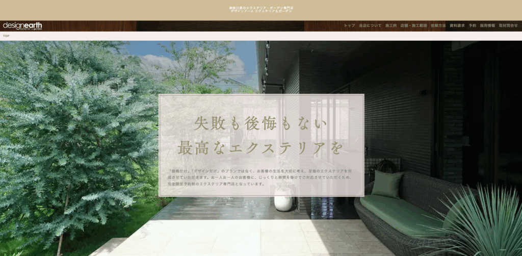 キャッチコピーは「失敗も後悔もない 最高のエクステリア」。ヒアリングに時間をかけ、生活動線や使い勝手を重視した設計で、見た目と暮らしやすさの両立を狙います。予約制のため、落ち着いて相談できるのも特徴です。