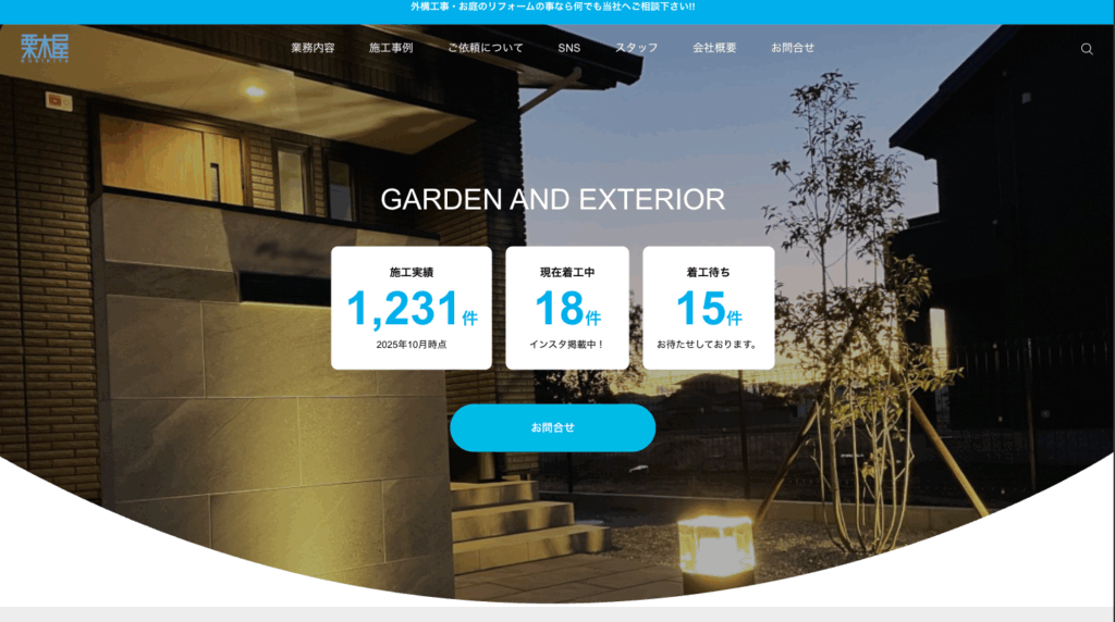 新築外構からリフォームまで対応し、盛土や造成を含む庭づくりにも明るい点が特徴です。コストを抑えつつも、見た目と使い勝手のバランスを意識した提案が期待できます。