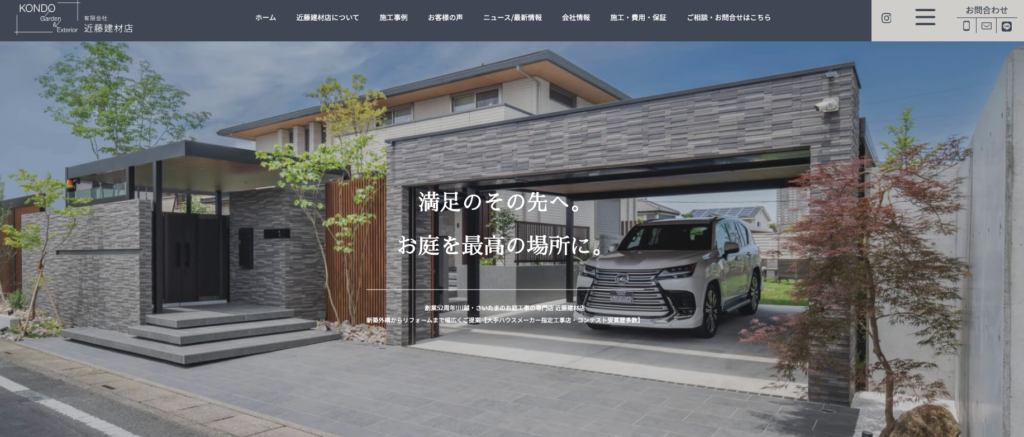近藤建材店は、外構・庭づくりを「暮らしの豊かさの設計」と捉え、住まいの価値を上げる外まわりづくりを目指す会社です。