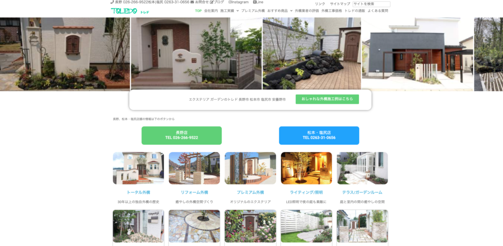 トレド長野・松本・塩尻は、造園会社を母体にした外構ブランドとして、植栽まで含めて外まわり全体を組み立てられるのが持ち味です。
