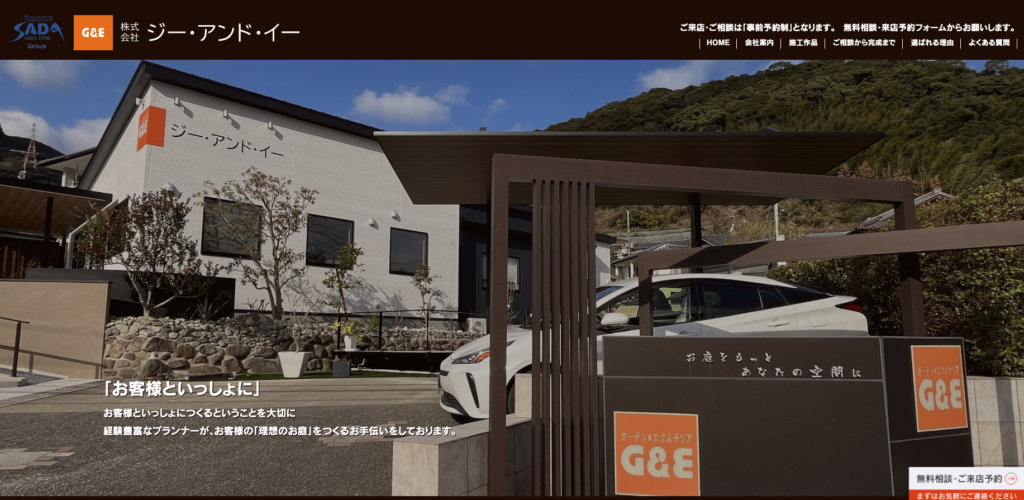 ジー・アンド・イーは、長崎県内で外構・エクステリアを専門に手がけている会社です。時津町に展示場を構え、多くの施工事例を通じて地域の暮らしに合った庭まわりの提案を続けています。新築外構からリフォーム、ちょっとした駐車場まわりの整備まで、規模を問わず相談できるのが特長です。