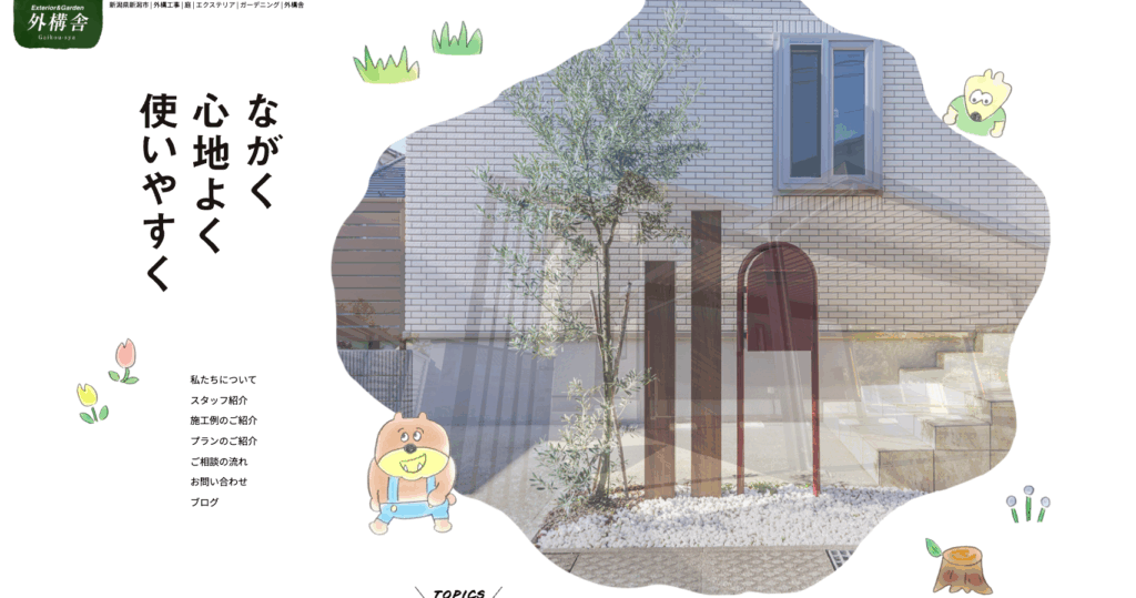 外構・エクステリア・植栽・土間などをまとめて相談でき、要望を反映した手描き図面で仕上がりイメージを共有してくれます。打合せがスムーズで、初めての方でも検討しやすいのが安心材料です。