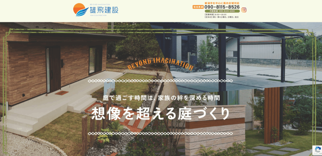 阿賀野市のスタジオにはショーガーデンがあり、植栽の組み合わせやライティングの雰囲気を体感しやすいのが特徴です。施工事例とお客様の声も豊富で、和モダンからナチュラルまで幅広いテイストに対応しています。