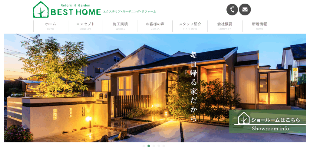 岡山市でリフォーム・外構を手がけるベストホームのエクステリア拠点が「国富店」。モデルガーデンや実物展示を活用した相談体制で、外構と庭のイメージづくりを支える。