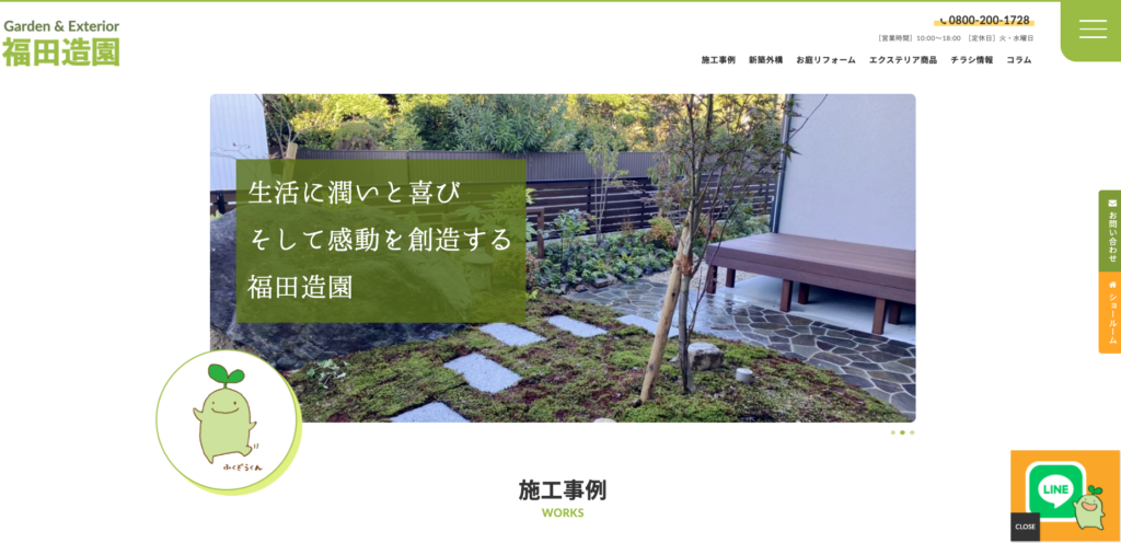 外構・造園工事の累計実績は2,500件(2024年時点)を超え、地域のさまざまな住宅で経験を積んできています。専門資格を持つスタッフも多く在籍しており、デザイン面と施工面の両方から安心して任せられる体制が整っている会社です。デザイン性の高い外構をじっくり相談したい人におすすめできます。