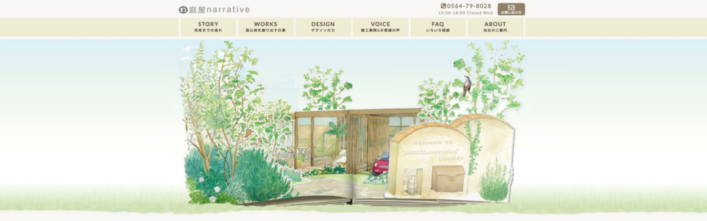 庭屋ナラティブは、岡崎市羽根町にあるエクステリア・ガーデン専門会社です。造園やウッドデッキ、ガレージ・カーポート、門まわりなど、外構全般を手掛けており、外構工事とお庭づくりの双方に強みを持っています。三河エリアを中心に、名古屋や豊橋方面まで対応している会社です。