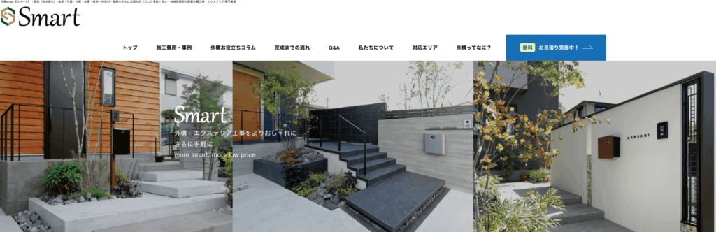「価格もデザインも大満足」を前面に掲げ、初期段階から費用感を掴みやすい打ち出しが特徴です。新築外構一式などのパッケージ的提案を軸に、トーンを揃えた素材選びで見た目の完成度を高めていくスタイルが目立ちます。