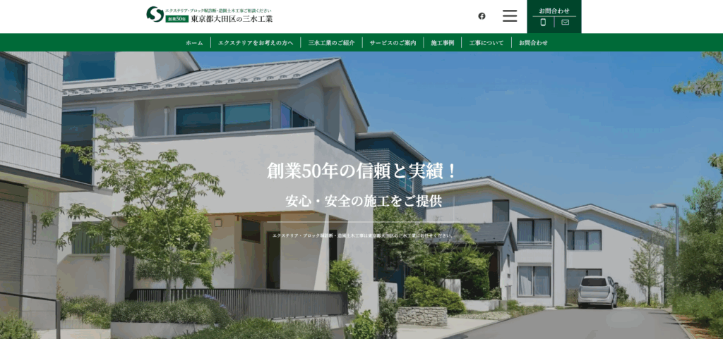 大田区に根差した体制で、外構一式はもちろん、塀・フェンス・駐車場まわりなど“家の外回り”を幅広くカバー。写真事例は実用本位で、暮らし目線の使い勝手と耐久性を意識した納まりが多い印象です。