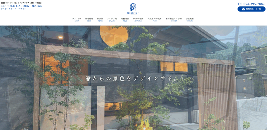 静岡市葵区のガーデン・エクステリア専門店です。コンセプトは「窓からの景色をデザインする」。住まいの内外のつながりを重視し、視線の抜けや四季の変化まで計算したプランニングを行います。