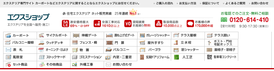 エクスショップは、170,000件以上の施工実績がある業界最大手のエクステリアショップです。