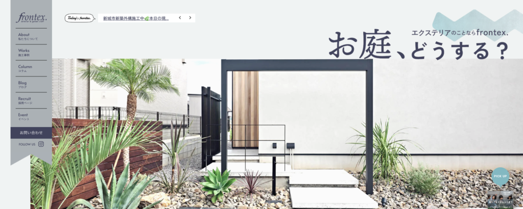 frontex.は、豊橋市を拠点に外構と庭づくりを手がけるデザイン型の外構店です。建物の印象をより引き立てるために、素材感やラインの使い方にこだわったプランニングが特徴で、落ち着いた雰囲気の外構を求める人から高く支持されています。