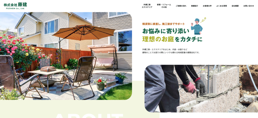 藤建は、横須賀市に根ざして外構工事・エクステリアを中心に、新築住宅や各種リフォームまで対応している建築会社です。「住まいの顔である外構にこだわりたい」という声に応えるべく、外構工事と建物まわりをまとめて相談できるのが大きな特徴です。