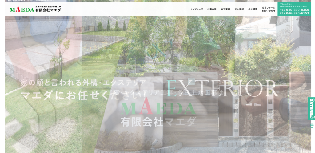 有限会社マエダは、横須賀市を拠点に建設土木業を営む会社で、道路改良・下水道・舗装工事などの公共工事から、一般住宅の外構工事・エクステリア工事まで幅広く手掛けています。土木工事の経験が豊富なため、強度や排水計画など、見えない部分の安心感を重視した外構づくりを任せやすいのが特徴です。